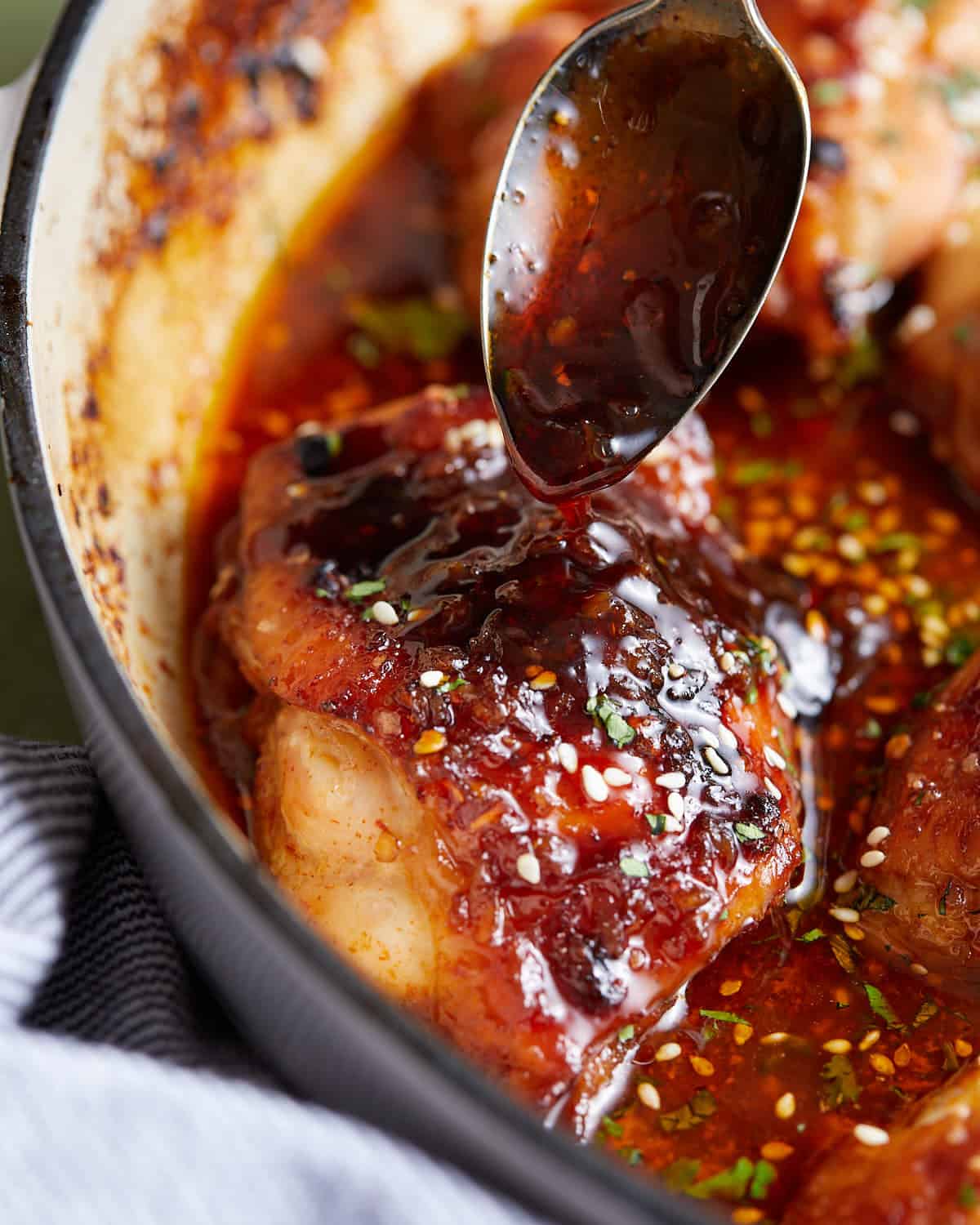 The Maillard reaction occurs when the chicken browns in the hot pan, creating hundreds of new flavor compounds through the reaction between amino acids and reducing sugars. Meanwhile, the caramelization of the brown sugar in the sauce creates additional flavor complexity through pyrolysis, breaking down sugar molecules into increasingly complex compounds that provide notes of butterscotch, caramel, and toffee.
