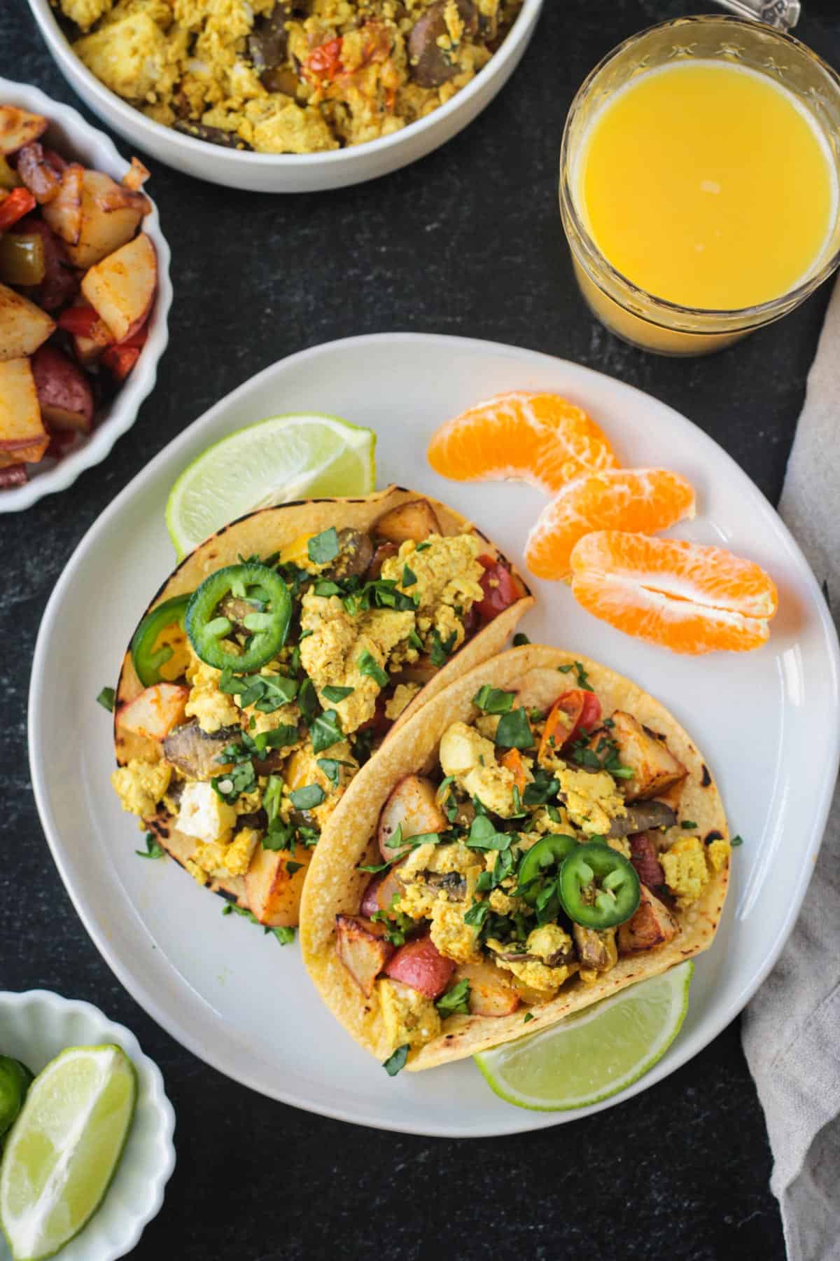 High-quality protein, complex carbs, fiber. For healthier version: bake instead of fry, use egg whites, increase vegetables. Vegan: tofu scramble with nutritional yeast. Gluten-free: ensure tortillas certified GF.