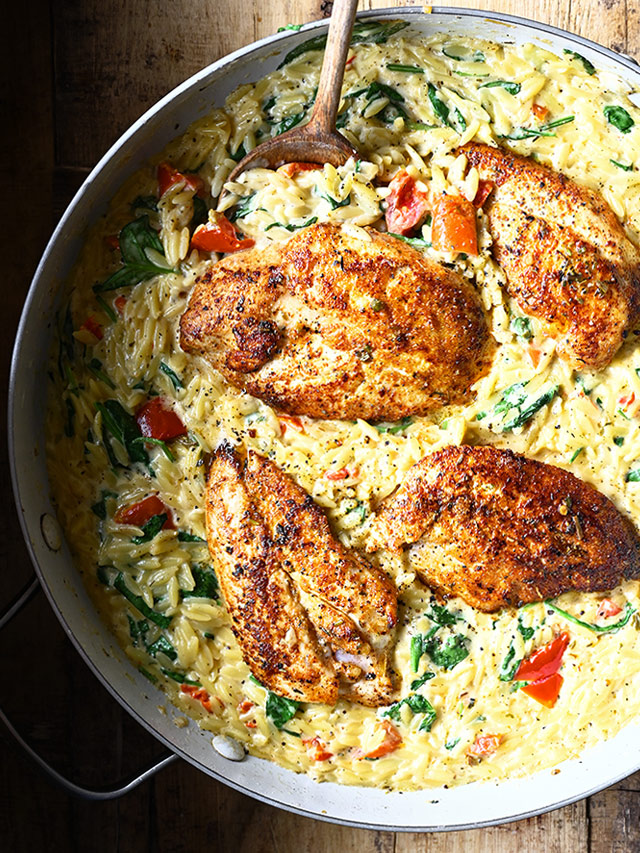 Creamy One-Pan Orzo Tuscan Chicken Bake
