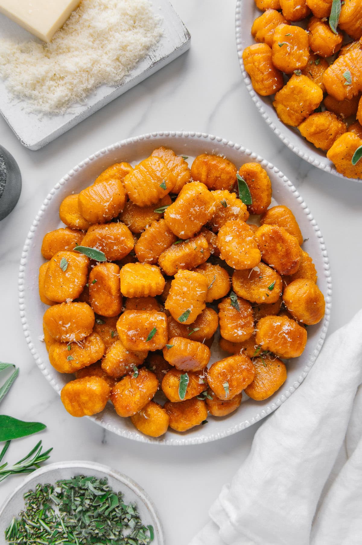 For extra flavor, bake potatoes with rosemary sprigs. Add nutmeg or lemon zest to the dough. Infuse the butter with garlic and chili flakes before adding sage.