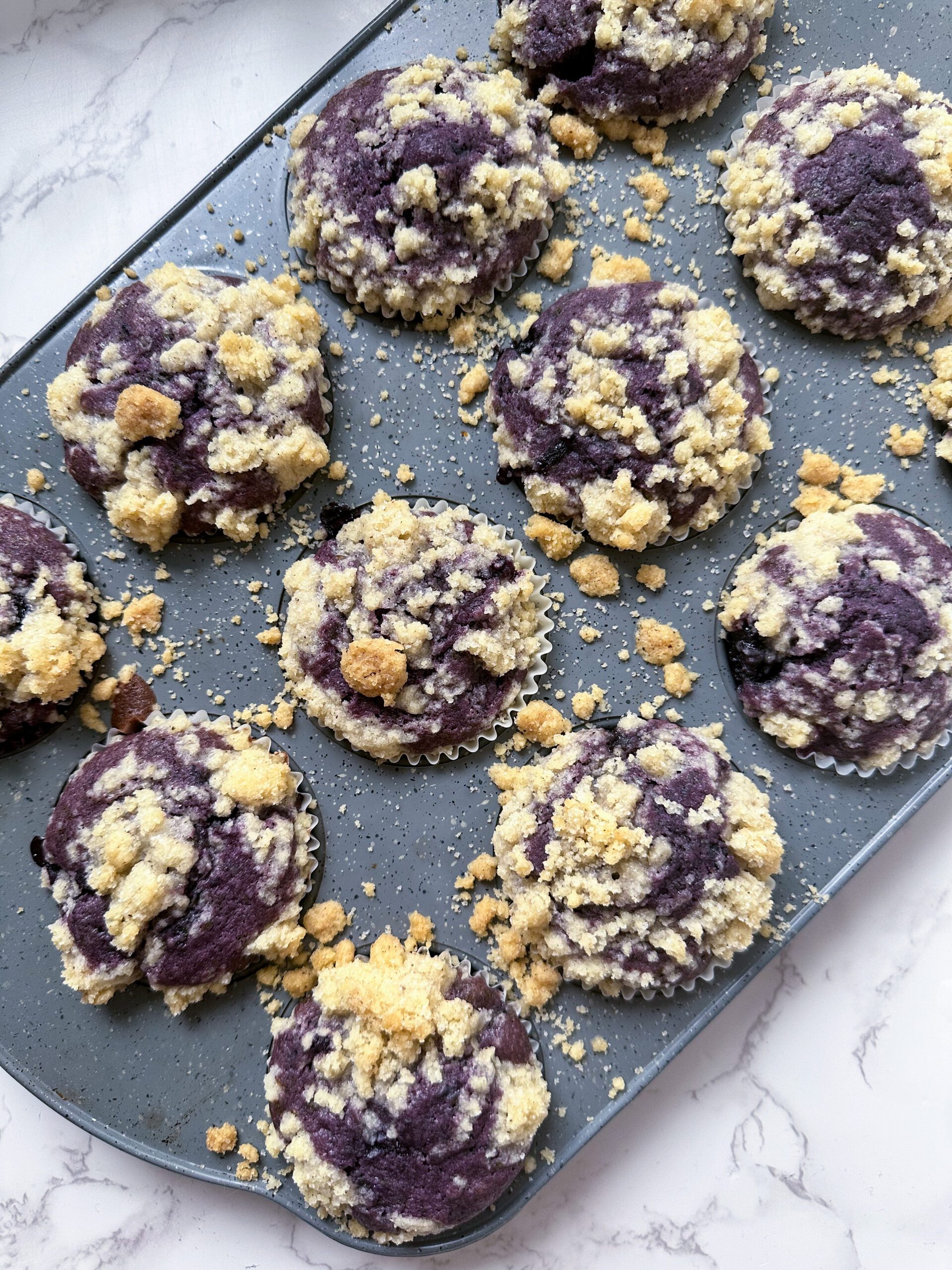 Blueberry Cream Cheese: Fill muffin cups halfway, add a teaspoon of sweetened cream cheese, then top with more batter.