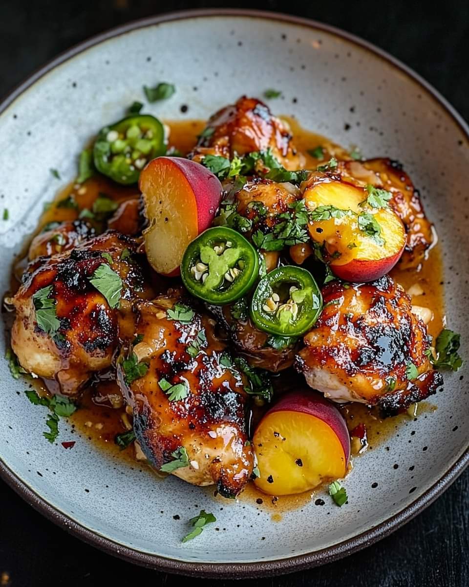 - Serve the Jalapeno Peach Chicken over cooked jasmine rice or quinoa for a complete meal.
